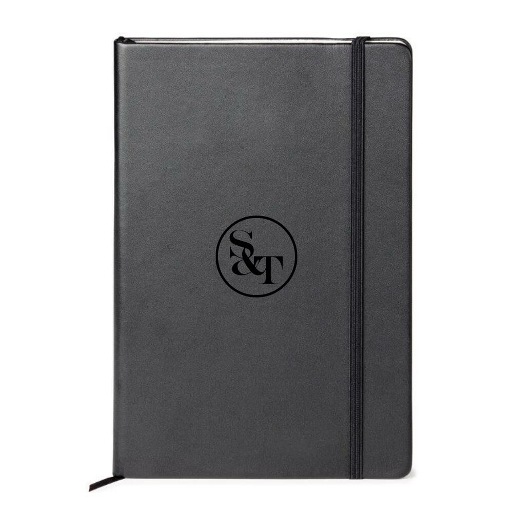 The Moleskine journal features a durable thread-bound binding and 240 lined pages of acid-free paper. Known for its quality construction, this notebook opens flat and is a pleasure to write in. Your logo is debossed on the front cover. Dimensions: 5.25" x 8.25"